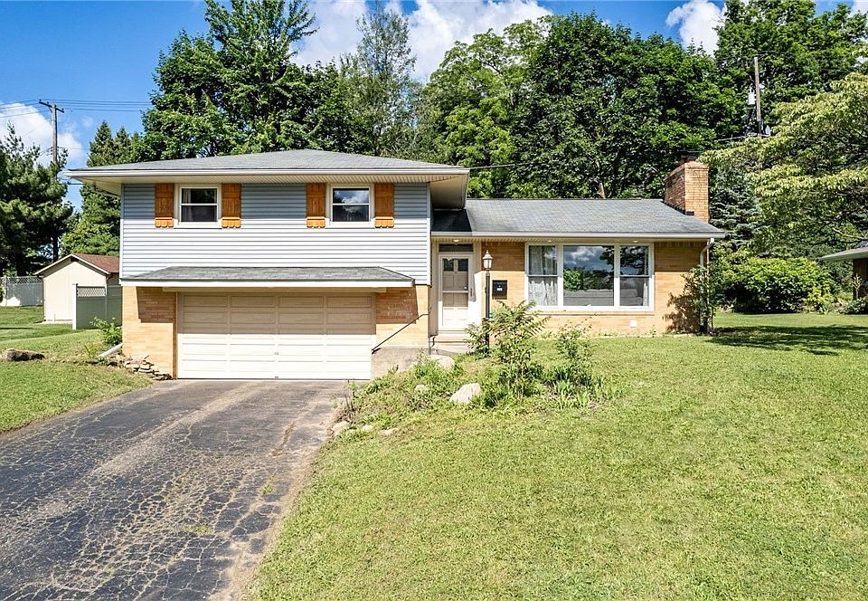 Welcome to your dream home—tailor-made for modern living! This stunning 4-bedroom, 2-bathroom haven is packed with updates and bursting with personality. As you step inside, you'll love the open floor plan that's perfect for entertaining or just chilling with friends. The great room is bathed in natural light from the new, oversized windows and a sleek sliding door off the dining area. Picture cozy nights by the fireplace or hosting epic gatherings in this inviting space. The kitchen is a total showstopper! Whip up your favorite dishes in this culinary paradise, featuring a 9-foot center island with bar seating and shiplap accents. The modern gray cabinetry offers tons of pantry space, with soft-close drawers, solid surface countertops, and a stylish tile backsplash that ties it all together. Head upstairs to the master suite, your personal retreat. With two closets and a private, spa-like bathroom, you'll have all the space you need. Enjoy a luxurious tile shower surround, and the updated vanity. Two more bedrooms and a gorgeous full bathroom with dual sinks and another tile shower surround complete the upper level. Downstairs, the huge fourth bedroom offers endless possibilities—it could be your home office, gaming room, or a cozy guest room. You'll also appreciate the 2-car attached garage , a basement with new glass block windows, a newer hot water tank, and a newer electric panel. This home is move-in ready and waiting for you to make it your own. Don't miss out—schedule your visit today and start living your best life!