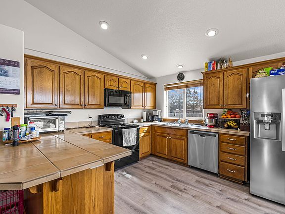 Located on the outskirts of the City of Metolius, this 3 bedroom, 2 bathroom, 1296 sq ft home built in 2006 sits facing the farm fields with view of the 3 sisters. Large open vaulted ceilings in the great room area making the rooms bright and airy. Seller has recently installed zoned ductless heating/cooling system, bathroom lighting, luxury vinyl plank flooring throughout and above grade carpet in primary suite. Kitchen offers beautiful oak cabinets, tile countertops, lots of countertop space. Large primary suite with walk in closet. Attached finished garage. Alley access to garage creates a supersized parking area with room and electrical hookup for your RV. The front of the home offers a secondary area for parking (parking space as well as on street parking available). The perfect place for your to call your new home sweet home!