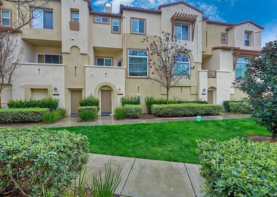 Desirable townhome in the gated community of Coronado Ranch in San Marcos. Adjacent to San Elijo and CSUSM (Cal State University San Marcos). Highly rated San Marcos Schools. Soaring ceilings on the main living level and large windows make this home feel very bright & open. Dual primary bedrooms upstairs each have their own ensuite bathrooms. Full sized "side by side" 2 car garage is attached. Washer & dryer, and kitchen appliances all convey. Home has just been painted in a trendy "greige" and brand new carpet, so just move right in! HOA features resort-style amenities including a fantastic pool, tot lot & a gym. Grassy areas throughout conducive for dogs. Convenient location near shopping, tons of restaurants, and hiking trails incl the beautiful Double Peak with views from downtown San Diego to Catalina Island.