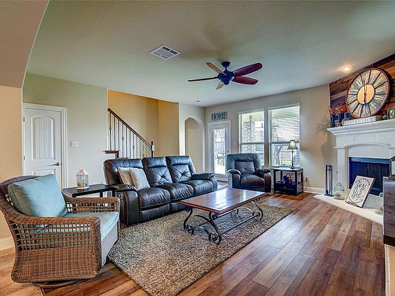 Lovely four bedroom home in the wonderful Williamsburg community, Rockwall ISD! The spacious living area has a fireplace and opens to the kitchen with breakfast bar, granite, counters, and stainless appliances. Breakfast area and a formal dining room. Luxury vinyl flooring recently installed! The first floor master suite features a master bath with dual vanity, garden tub, and a separate shower. Large living area or game room on the second floor along with three bedrooms. Great backyard with a covered patio and wood privacy fence. Neighborhood features community pool, jogging path, parks, and much more!
