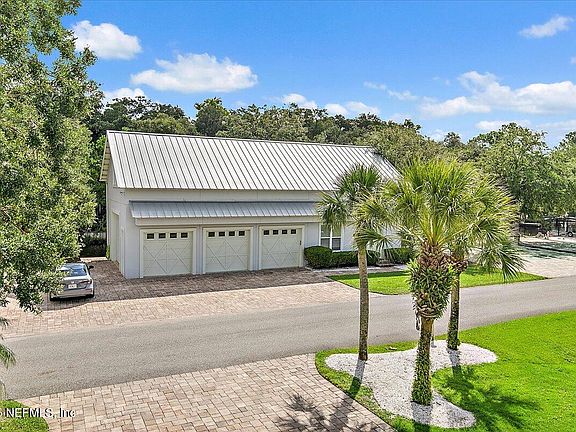 Rare opportunity on the Intracoastal in Ponte Vedra Beach's sought-after Canal Rd neighborhood. This waterfront home features a large outdoor living space with covered boat dock, two lifts (10,000 & 13,000 lb), spacious lanai with tongue & groove ceiling, retractable screens, fireplace, summer kitchen, prep island, green egg and a pizza oven. A stone pool deck with a spacious lap pool, relaxation shelf, and a spa. Inside, enjoy soaring ceilings, exposed wood beams, and a gourmet kitchen with high-end appliances. The first-floor owner's suite includes a flex room plus an additional bedroom on the main level. Upstairs offers a loft and two ensuite bedrooms. The main home has a 2-car garage. Across the street, a detached 1,620 sq. ft 3-car garage/boat storage includes unfinished second-floor space with endless potential. A perfect blend of luxury, functionality, and waterfront living—ideal for boaters and entertainers alike.