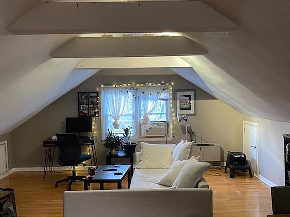 What makes this house special is the grand front porch which sits up in the trees along a tree-canopied Clarendon St. The apartment is a Master Bedroom Suite, on the 3rd floor with over 1,400 sqft. The rear stairs bring you in through the study area with a built-in desk, and walk-in coat closet, and a hallway leads to an open living room with a cathedral ceiling. The access to the rear porch is at the foot of the stairs to the master suite level off the rear staircase. The living room is open to an eat-in bar just across from a raised pedestal bed with a walk-in closet. There is one 3/4 bath with a skylight. 100 hundred-year-old beech hardwood floors throughout, hardwired internet jacks in every room, and 1 Gig wifi included in the rent package. Also included in the rent package is Off-street parking is available for six cars and on-site laundry with two washers & two dryers in the full basement. Additional rent packages can include utilities and all furnishings completely turnkey to just move in with your linens and clothes. Rent Packages Include: Package A: Wifi/Internet & Laundry Package. Which includes Verizon Gigabit Internet (1 Gig/1000mps, 10x faster than Spectrum), & WIFI coverage throughout the property. Laundry is included onsite without having to put coins in, off-street (if still available, based on seniority & signing date) parking, and base rent. Package B: Everything in Package A plus rent includes utilities (heat/hot water natural gas & electricity). Tenants will have to pay a quarterly charge for their share of City water/sewer services. (usually $20 per qtr) Package C: Includes everything in Package A & B plus includes furnishings delivered to your apartment, which includes Bedroom (bed frame, Mattress, desk, desk chair, dresser), Living room (Couch, chair, coffee table) Kitchen (Toaster, Microwave, All Kitchen utensils). Eat In Counter Stools. You will only have to bring bedding, towels and shower curtain & liner.