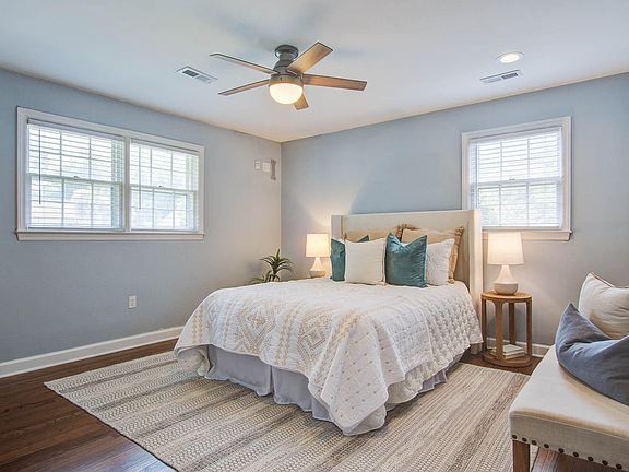 Immaculate 1-story brick home in prime James Island location! This home has been beautifully updated and includes 4 bedrooms, 2 bathrooms, off-street parking, and a bright and open floor plan. From the moment you arrive, you will notice the excellent curb appeal with mature trees and a covered front porch. Entering the home, you will be greeted with newly refinished hardwood floors and a well-thought-out floor plan that offers the perfect flow for entertaining. The recently renovated kitchen boasts a large island with overhead pendant lighting, stainless appliances with a Thermador gas range with pot filler, a farmhouse sink, a white subway tile backsplash, and tons of cabinet/storage space with soft-close drawers. The kitchen combines with the great room and the dining area (completewith wet bar) and continues on to the sitting area with tons of natural light and direct access to the back deck. Down the hall is a large primary suite (with renovated ensuite bathroom) 2 additional bedrooms, and a full bathroom. The 4th bedroom is a flex space on the other side of the kitchen that would also make an excellent home office or playroom. There is also a laundry room with storage cabinets, a 2nd fridge, and a stackable LG washer/dryer that will convey. Additional upgrades include an updated, two-stage HVAC unit with ductwork, a tankless hot water heater, spray foam insulation in the attic, a vapor barrier in the crawlspace, new electrical wiring throughout, structured wiring for ethernet and television, and a circuit transfer switch for an external generator. The private, fenced-in backyard features an elevated deck, a paver patio, a large storage shed (with power), and a side gate that allows for easy boat storage. Best of all, this property is located in an X flood zone and there is NO HOA! You will also be right down the street from Melton Demetre Park- the ONLY city-owned waterfront park on James Island. The park offers spectacular views of the harbor, 2 sandy beaches, a fishing pier, a floating dock, a playground, and a picnic area. It is also within walking distance to the James Island yacht club and just 10 minutes from Downtown Charleston and 15 minutes from Folly Beach! This gem will not last long- schedule a showing today!