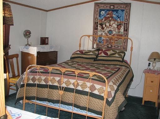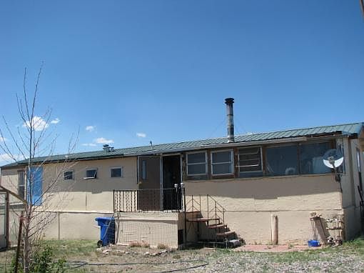 40 acre parcel--all fenced. A Cavco 14x60 mobile home built in 1998 has 2 bedrooms, 2 bath, with forced air heat and metal roof. Porches totaling 256 s.f. are on each side of the home and are nice for lounging and enjoying the view to the mountains and the Rio Grande Corridor beautiful in the changing seasons. Wood stove, pantry and extra storage are handy in these add-ons!! Outbuildings include an open-faced shed with a workshop and tack room. Electric and water underground to the shed. Domestic well will provide for lawn and garden, household needs, and livestock. This property would be good for full-time or vacation home.