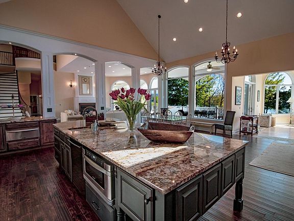 Every Room has a breathtaking lake & mountain View & are set up perfectly for entertaining family & friends, Kitchen & bar are finished with Knotty Alder cabinets with under-mount lighting, bead board and glass cabinets, crown and light rail moldings a 12'3'' x 5'3'' island with Mascarello exotic granite counter-tops. A spectacular Grand Habersham Hutch truly sets this kitchen apart .5'' Gatsby Hand-scraped hardwood collection 7 on suite bedrooms Master has a private deck