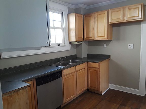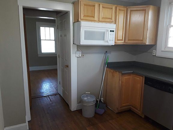 No Section 8 Large two story 2-3 bedroom / 1 bath home Two bedrooms upstairs with bathroom Dining room on first floor can be used as a 3rd bedroom Kitchen with built in microwave and dishwasher Hardwood floors New windows New paint throughout the house unfinished basement with w/d hookups covered front porch covered back porch with fenced in back yard One car garage can be rented for extra $50 / mo Cats and dogs are accepted. Cats extra $15 per month with $100 non-refundable pet fee Dogs extra $25 per month with $200 non-refundable pet fee Deposit same as rent if good credit, good rental history with no evictions, and been at same job for 2 years or more. Otherwise, deposit will be higher. We are still working on the home; will be replacing the windows in week or two. tenant provides appliances: refrigerator and stove