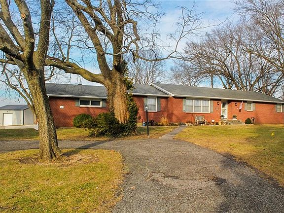 The partially finished basement offers a conforming bedroom and lots of storage room and with a walk-up exit. Additional highlights include a new metal shop, new carpet and vinyl flooring, foundation repair completed in 2023, yard re-seeded and leveled in 2024, and a new deck added in 2024. Enjoy the hearth room with a beautiful brick fireplace. Located in town yet offering a country feel, with space for cattle or horses—or the option to rent out the back pasture. Pond on property. Truly move-in ready with the convenience of town living and the charm of the countryside.