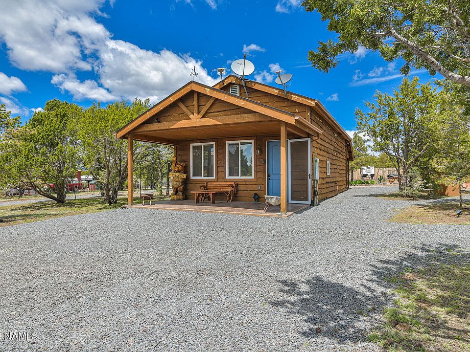 Super Luxury site built home on over an acre with tall privacy fence and flat usable lot. This cabin in the woods is completely move in ready. Super thick insulated walls to keep you comfortable all rear round. Septic system sized for a 5 bedroom home should you wish to expand. RV parking, large shed and amazing attention to detail. Inside you will love the 9 foot ceilings, luxury flooring, the gas fireplace and the matching stainless steel appliances. Stay comfortable with the high efficiency furnace and tankless water heater. Both the siding and the 7/12 foot tall privacy fence are made from thick slabs of local Ponderosa pine for an upscale and unique look. The headboards on both beds are made from the same slabs of pine. All furniture available outside of escrow. One of a kind!
