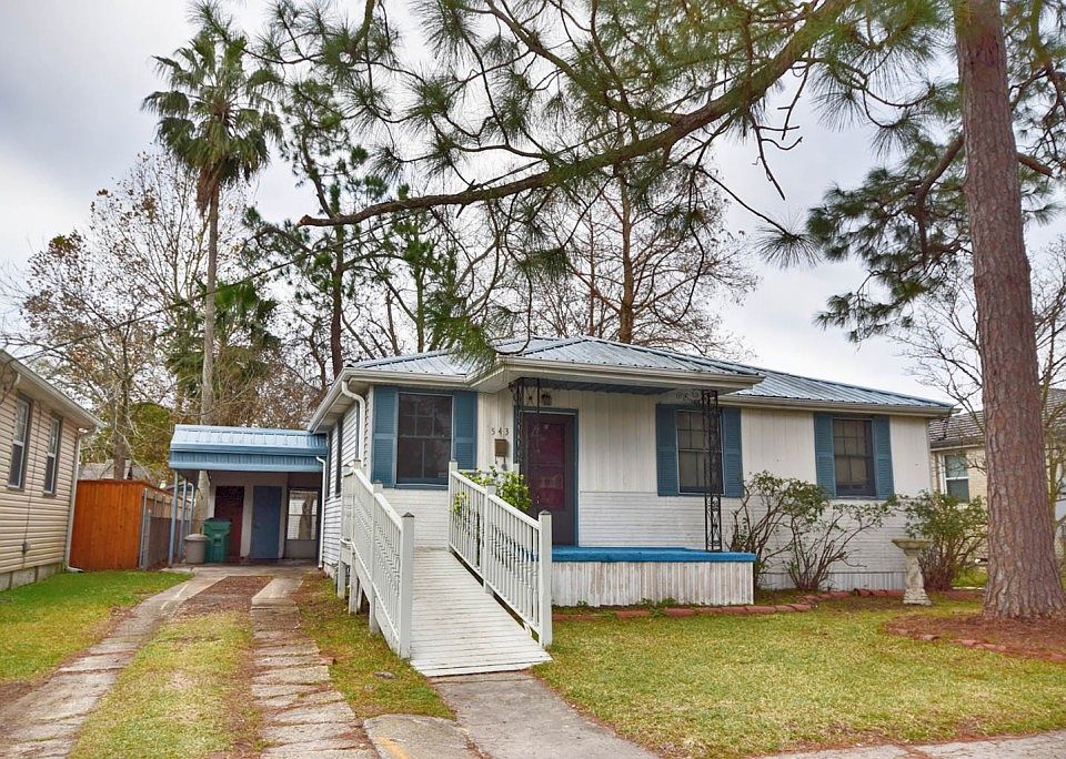 2 BED, 2 BATH (COULD BE CONVERTED BACK TO 3 BEDS), OPEN FLOOR PLAN, NON FLOOD ZONE, NEEDS RENOVATING AND UPDATING, AC NEWER, DEN PLUS LIVING ROOM, FENCED YARD, ORIGINAL HARDWOOD FLOORS, SINGLE ATTACHED CARPORT, NEWER WATER HEATER.