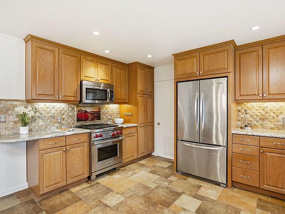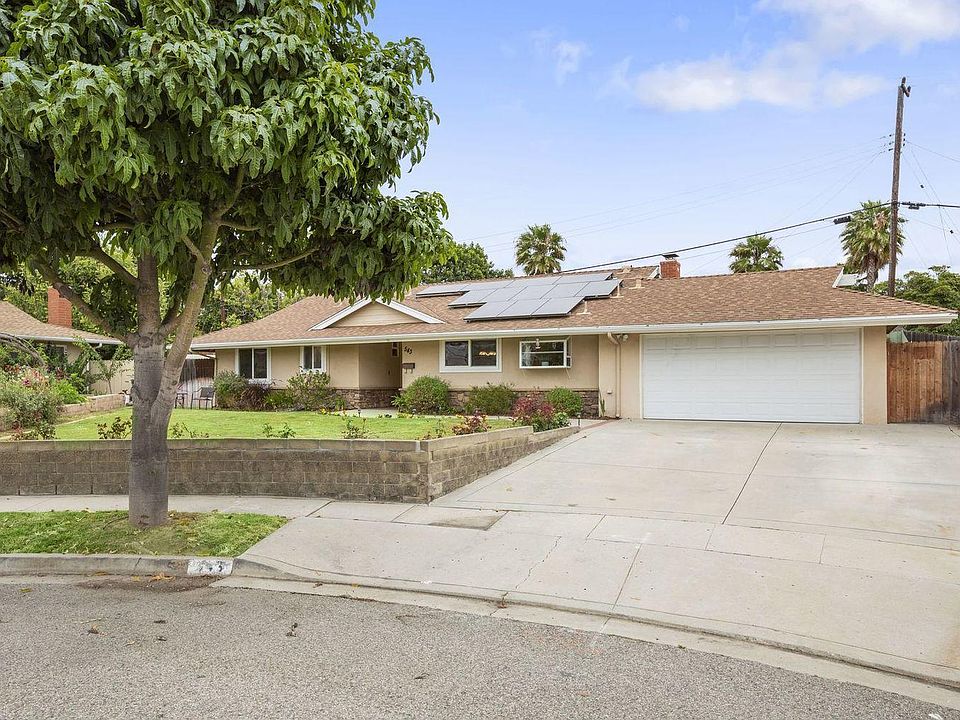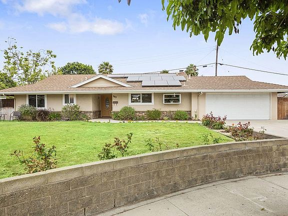 Welcome Home! Beautifully Upgraded residence located on a large cul-de-sac lot w/great curb appeal. Gorgeous custom patterned tile flooring & living room w/fireplace with custom mantle made by a Bishop, CA artisan & newer doors to backyard. Open & Highly Upgraded kitchen with granite counters w/tile back-splash, stainless steel appliances w/ Wolf Range. Newer soft closing cabinets w/roll out drawers. Wainscoting. Tons of counter space & big dining room area. Window box over sink. Remodeled guest bath w/deep tub. Master bedroom suite has attached updated bath w/walk-in travertine shower. And, then, comes the BACKYARD...not only is it huge & private but it has quality stamped concrete patio area w/built in BBQ area, plus built-in cocktail bar area, terraced back wall, flowerbeds, climbing roses, outside speakers & lighting , french drains & a lovely sycamore tree surrounded by a large lawn area. An entertainers delight. Home boasts of owned solar panels (low to no electric bills) newer windows, newer roof, mirrored closed doors, newer water heater, newer plumbing & the list goes on. (approximately $120,000 in upgrades in the past 10 years) Home located in a quiet cul-de-sac yet near schools, shopping, Boys and Girls Club. A truly special home