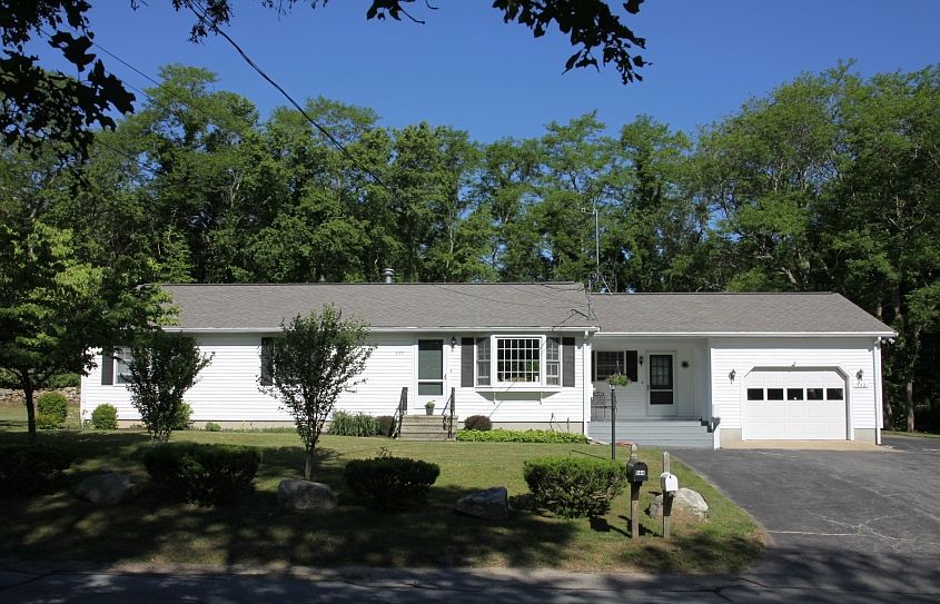 Well-maintained 3 BR, 2 BA Ranch on an attractive 31,306 sf lot close to Central Village offers one-level living! Open floor plan w/vaulted ceiling/skylight boasts Kitchen/Dining/Living w/slider to tiered decking overlooking private backyard. Oak & bamboo floors, w-w carpeting. Natural gas heat! Sun/Sitting Room. Two finished rooms on lower level could be office/family room. New furnace in 1996, roof was new in 2006. AFFORDABLE!