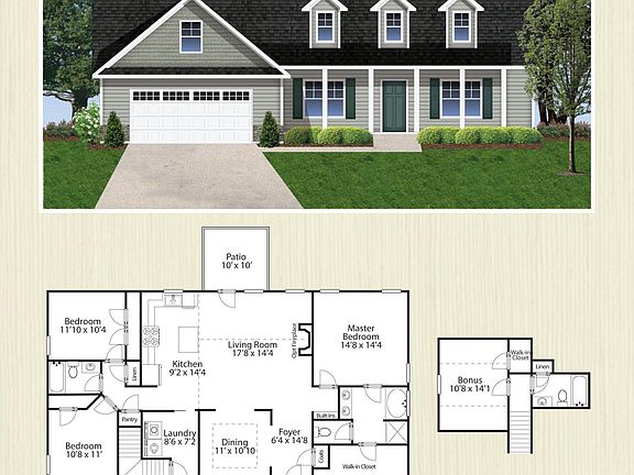 The Aspen floor plan is a split floor plan that offers 3 bedrooms, THREE bathrooms and a bonus room. The 3rd bathroom is located upstairs in the bonus room along with another closet. The kitchen is open to the living area and includes a pantry, stainless steel appliances and lots of counter space. There is also a separate dining room. The primary bedroom has a walk-in closet. The primary bath has has a double vanity, water closet and a separate tub and shower. Don't miss this one. *Room dimensions and heated square footage may vary. Builder reserves the right to alter floor plan specifications and features.