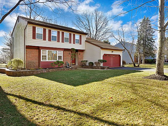 A delightful 4 Bedroom 2.5 Bathroom Spit-Level in Hickory Knolls is situated on a beautifully landscaped partially wooded lot. Plenty of living space w/Living Room, Dining Room, Kitchen and Powder Room on the first level. Eat-in Kitchen offers all the essentials w/plenty of cabinetry and counter space. There is a sizeable family room with vaulted 12' ceilings, skylight, fireplace and a gorgeous 4-panel patio door. A few steps lead to the sleeping quarters with 4 bedrooms and 2 full bathrooms. Master Bedroom features a walk-in closet and a full en-suite bathroom w/double sink. Home has a central vacuum system & whole house fan. The basement provides for plenty of storage. Outside you will find attractive hardscaping, landscape lighting, an irrigation system, and a 450+ sf two-tier deck.