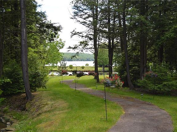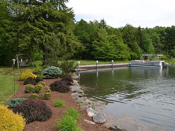 One of a kind water front property on private Indian Lake, double lot. Towering 80 feet ceilings highlight the massive interior of this beautiful A Frame home. Floor to ceiling wood burning stone fireplace with built in circular seating. Newly renovated high end custom kitchen equipped with quartz counters and beautiful cherry cabinetry. Storage galore in the many custom built-ins that highlight this spacious and inviting kitchen. Steps away is the stone accented dining room, ideal setting for entertaining. Lovely updated master bedroom with jetted tub and beautifully tiled shower. Two additional spacious bedrooms with fantastic bath equipped with double vanity and glass block double shower. Take in the spectacular views of the great room and lake from the upper level family room. This very unique property encompasses two lake front lots, Lot 3 and 4, totaling 200 feet of water frontage. Custom docks, paved walkways to the water, private pond and stream. A very special property.