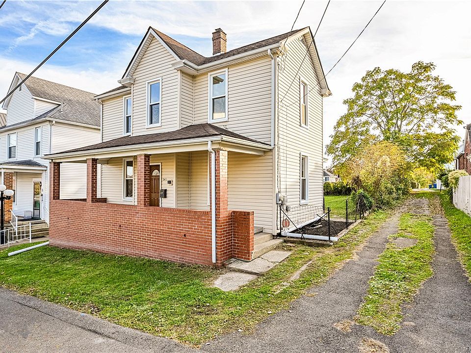 Old time charm + a current quality remodel =‘s an amazing outcome! Picture yourself relaxing with a beverage and casual conversation while on the front covered porch w/a bonus beautiful view of the fall ridge foliage! The entry way greets you & you see the extra wide baseboard trim highlighting the brand new luxury floating floors. Current lights & paint palettes add a nice final touch . The updated kitchen features a brand new quartz countertop, oversized sink, sprayer faucet, stainless steel appliances, hardware & a festive back splash. You’ll enjoy holiday meals & gatherings in the formal dining area which has new cabinetry w/a quartz countertop & a built in cupboard. The new carpeting leads you to the upper level. The brand new bath also serves as a laundry area. The primary bedroom has a walk in closet .Lots of light through the new life time warrantied windows. The level backyard is great for outside fun or your dream garden. New: french drain & side porch roof, main roof (2017).