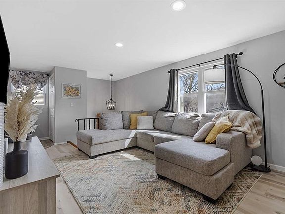 The main living area features an open layout with large windows that allow natural light to pour in, highlighting the home's thoughtful updates. The kitchen is well-appointed with modern finishes and flows seamlessly with the rest of the main level living spaces.