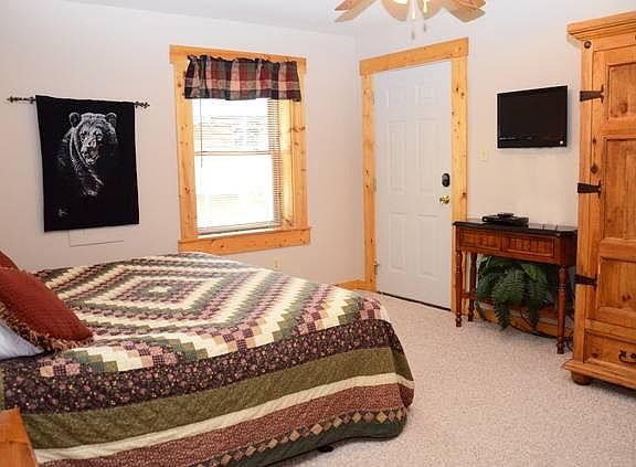 Searching for a group cabin that's perfect for your Smoky Mountain vacation? Look no further than Eight Bears Lodge, a beautiful five bedroom, three bathroom cabin rental located less than three miles from downtown Gatlinburg, Tennessee. Sleeping up to eleven guests, this lovely cabin offers a plethora of amenities you and your guests will thoroughly enjoy while on your great Tennessee vacation. This Gatlinburg cabin rental offers a log exterior and only one step into the cabin, charming you from the moment you arrive. Located only four miles from downtown Gatlinburg, Tennessee, Eight Bears Lodge is close to all of the attractions you have been wanting to visit. Eight Bears Lodge is the ideal Smoky Mountain cabin rental for your family vacation or retreat with friends. Eight Bears Lodge boasts four king beds and one full size bed, with a queen size sofa sleeper to sleep any additional guests you may have on your vacation. In the evenings, retire to your bedroom and watch a television show or two before drifting off to sleep. All bedrooms of this Gatlinburg cabin offer televisions and reading lamps for your convenience. This is for a 4 day stay. The deposit is required before staying. Smoking and pets and smoking is ALLOWED but you MUST clean up after your selves and pets have to be in a crate at night.