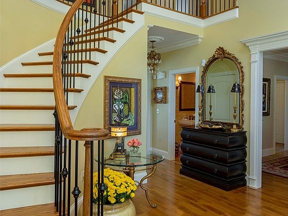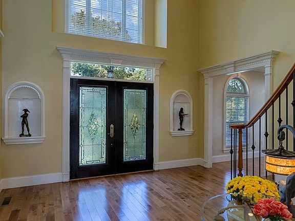 Pure elegance in this 5BR, 4.5BA architectural masterpiece! Enter this superbly crafted custom home and you will be greeted by an impressive 17-foot ceiling foyer with a grand oak and wrought iron staircase. To the left you will find the formal living room, which leads to the office/library with built-ins. To the right of the foyer, is the formal dining room. The open concept gourmet kitchen features Kitchen Aid stainless steel appliances, Kraft-Maid wood cabinetry, undermount lighting, granite countertops, Franke sink, and porcelain tile flooring. Enjoy your morning coffee from the breakfast nook overlooking the beautiful Tennessee sunrise and the serene landscape of the outdoors. The kitchen opens into the family den which is saturated with natural light. It is equipped with a wet bar, cabinetry with undermount lighting, granite countertop, and designer sink. A set of French doors take you outside to the patio for outdoor living.