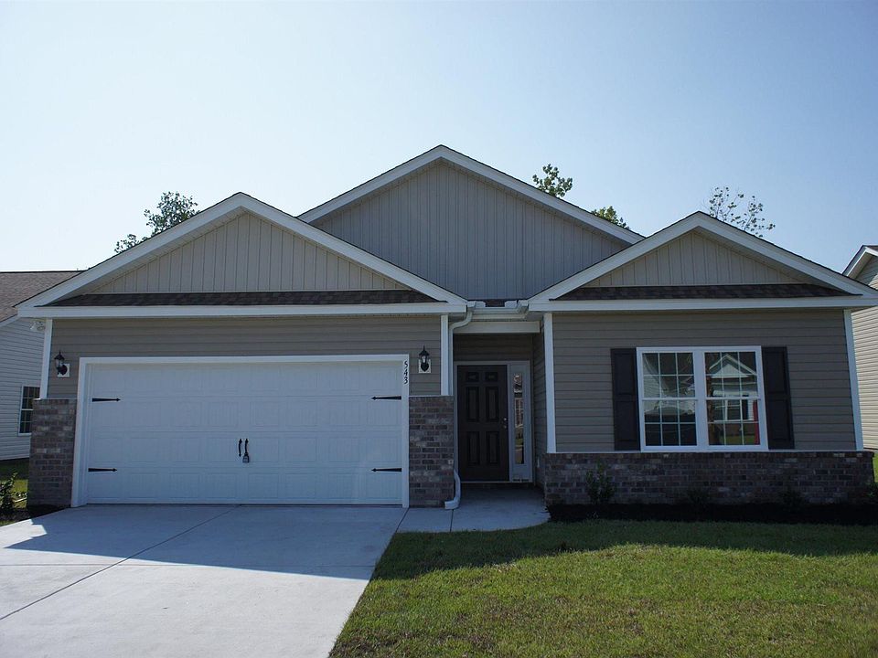 Beautiful Topsail floor plan in the new Ocean Palms community. This terrific open floor plan, 3 bedroom, 2 full bath home will have LVP flooring in the family room, kitchen and dining area, under the soaring vaulted ceiling, and comfortable carpet in the bedrooms. Stainless appliances, staggered-height Shaker-style cabinetry, quartz counter and a convenient breakfast bar combine to give you the wow factor you're looking for, and abundant recessed lighting plus two large windows in the adjacent dining area flood the room with light. A French door in the dining room leads to the covered rear porch and the large separate patio beyond. The spacious master retreat features a long vanity, an oversized walk-in shower, plenty of storage in the linen closet and a huge walk-in closet, plus a tray ceiling. Two additional bedrooms and a full bath are tucked off on their own hallway, for privacy. All of the homes in Ocean Palms come standard with the luxury of natural gas (tankless water heater, gas heat, and gas range). The two car garage is completely trimmed and painted, and a floored attic storage space is accessed by drop-down stairs. Ocean Palms is conveniently located near shopping, restaurants, schools and world class medical offices and hospitals, and only a short golf cart ride to Surfside Beach's gorgeous beach and the beautiful Atlantic Ocean. Other floor plans and inventory homes may be available, and CUSTOMIZATION OF FLOOR PLANS IS POSSIBLE!!! Community Pool and Cabana now open! Photos are of a completed, similar home and may have different features.