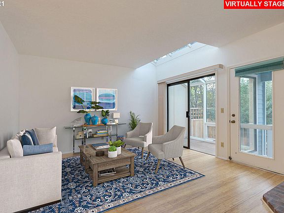 Location, location, location! New flooring thru-out w/engineered (strand woven) Bamboo floors on main & new carpet upstairs. Kitchen w/new Quartz slab counter tops. Large Primary suite w/Vaulted ceilings. 2nd bedroom w/walk-in wardrobe. Oversized garage features area for a work shop or storage. Private Sun Room overlooking the backyard w/patio & garden area (bearing fruits). Great walkability near Zupans, Eateries, coffee shops, Willamette park w/walking & bike trails! Open 11-1 on 11/14/2021