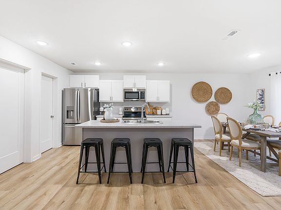 The four-bedroom, two and a half-bath Brooklyn model packs a lot of living into its 1,900 square feet. A large island is the highlight of its impressive Kitchen, with a walk-in pantry. This, in turn, opens to a large Dining Room and Great Room, with access to the back patio, helping to make every gathering a special event in this two-story home