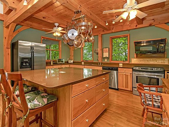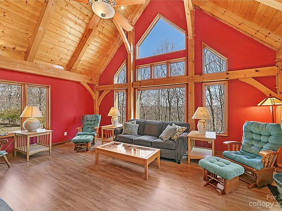 Retreat to 17+ acres of wooded privacy near Brevard and DuPont. Winter views can be enjoyed now and potential year round views imagined. Enjoy the beautiful woodwork of this Timber Framed home surrounded by wooded views from every window. Open beamed ceilings enhance the two-story stacked stone wood burning fireplace. The kitchen, with Hickory cabinets with quartz tops is centered by an expansive island for all to gather around. Dining area again opens to the vaults and views. Main level primary suite with soaking tub. Only one owner and many thoughtful custom features. Zoned radiant floor heating for efficiency, upgraded windows, a woodworkers dream workshop and an oversized detached garage with storage for all your outdoor toys and wired and ready to charge your EV. This can be your mountain home.