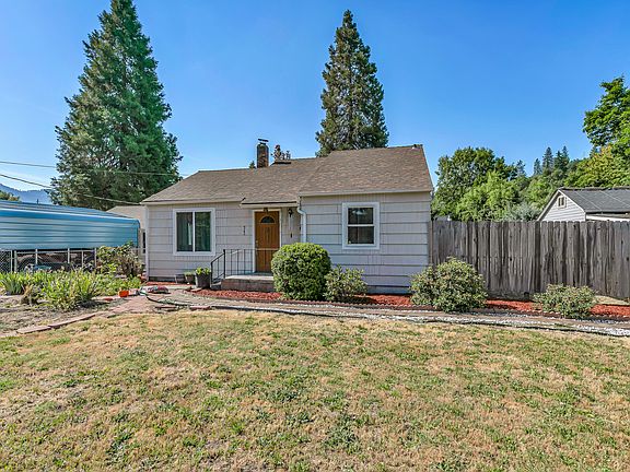 This charming and cozy 2-bedroom, 1-bathroom home is full of potential. It features a convenient indoor laundry room and separate dining and living areas, perfect for comfort and gatherings. The property includes a detached one-car garage/workshop, all set against a generously sized, fully fenced, and landscaped yard—ideal for outdoor activities or gardening, with Grants Pass irrigation rights. The backyard offers a chicken coop and run, along with fruit trees, including cherry, apple, nectarine, peach, and garden boxes ready for next year's veggies. Recent updates include a new mini-split HVAC system (installation completed by closing), fresh exterior paint, upgraded wall and floor insulation, and double-pane windows. Natural gas is piped to the property and is ready for connection. Whether you're seeking an investment opportunity or a place to create your dream home, this property offers endless possibilities!
