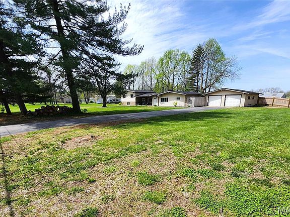 2400 sq ft - Tri Level Home on 3.25 acres. Features 4 bedrooms, 2 baths and 2 car garage. Large fenced in yard. Pole Barn with 12 ft wide sliding doors. Separate covered storage unit for RV's / Boats. Covered front porch. Large private patio/deck combo in back with a fire pit & grilling area. Above ground pool w/ attached deck. Step inside to a tiled entry foyer w/ a cute cubby for coats & backpacks. A stretched great room features a living room w/ stonework fireplace AND a naturally lit dining room that allows a view of the acreage and outside amenities. Hardwood and ceramic tile adorn most of the floors throughout the house. Updated eat in kitchen w/ granite counters, stainless appliances & pantry. Primary bedroom suite w/ private bathroom offers double sink on granite, deep tub & separate shower. Walk in closet w/ barn door. 3 more generous bedrooms, 3/4 bath & family room. Mudroom & Laundry Room w/ storage. 200 Amp Service. Zoned A/C, Furnaces & Water Heaters. New Roof (2024) Additional Rooms: Mud Room
