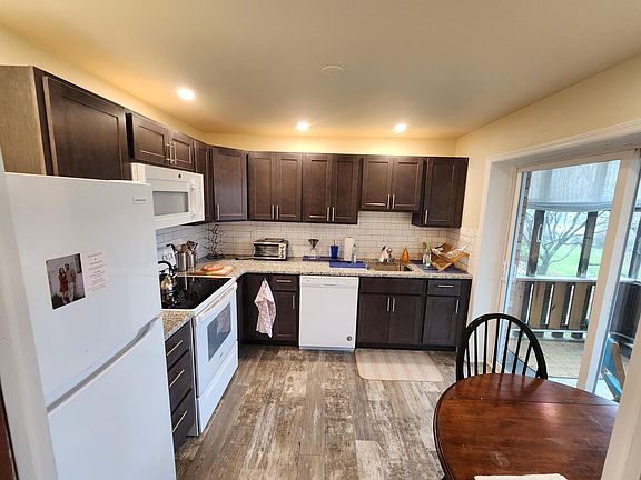 First floor apartment with remodeled kitchen and bathroom. Private screened patio overlooking a 3 acre shared lawn. Hardwood floors throughout. Heat is electric. Coin operated laundry in basement. Off-street parking for 1 car. One year lease, one month security deposit required. $400 pet security deposit and $50 pet fee required per approved pet.