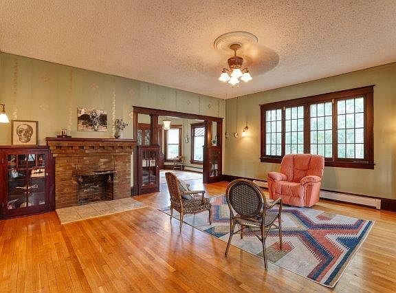 Dreamaker Historic Home on one level. From the first step inside the front door, the charm and craftsmanship will make you fall in love. Hardwood floors, built in hutches, classic dining room, large windows, fireplace and sunroom. The kitchen is tastefully update as well as 2 bathrooms. Unfinished basement provides lots of storage. Newly painted deck in the private backyard. 2 -car garage and covered work area complete the package.