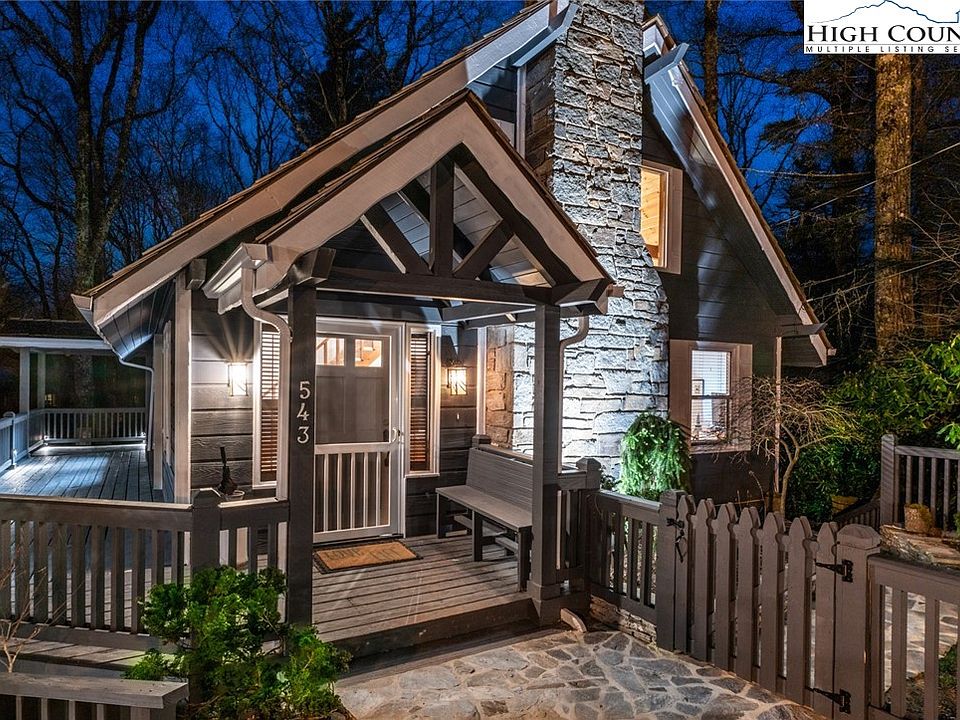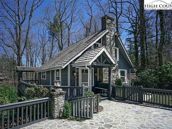 Storybook cottage teeming with charm and character, located in Blowing Rock's most historic neighborhood - Mayview Park. Terrific curb appeal with recently added flagstone driveway. Completely turnkey with three bedrooms and three full baths in this updated treasure. Step into the attractively appointed living room with gas logs, inviting furnishings, tongue-and-groove ceiling and beautiful hardwood floors. The upscale renovations provide a wonderful family room, guest room, laundry and full bath on the lower level. Multiple covered porches off the dining room for dining alfresco and relaxing to the sounds of New Year's Creek. Short walk to Broyhill Pond, Bistro Roca and Main Street. Five Mitsubishi mini-splits for heat and AC. 2022 renovations include: exterior paint, railings added, baths and kitchen updated. Electrical permit online; HVAC permit online; and no Plumbing permit on file. Fully furnished with these exceptions: mirror in main-floor bedroom, table and four chairs in dining room and personal items in drawers. Lower floor and dining room renovated before current seller so permits no longer available.