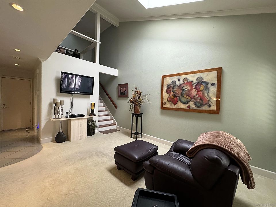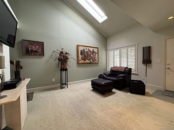 Listed at $750,000-$790,000 is this 3 bed, 2 1/2 bath home in Strawberry Hills! The master bedroom is oversized with an en suite bath. Prior owners removed the wall between bedrooms 2 and 3 making for a large second master, workout room, office or it can be converted back to two separate bedrooms. The home features gorgeous Brazilian Cherry Wood flooring upstairs and tile/carpet downstairs. Crown molding, recessed LED lighting, plantation shutters and wood blinds throughout. At the top of the stairs, there’s a nook great for reading time and a cup of coffee! And you’ll love the natural light from the four skylights and the dramatic vaulted ceilings in the living room. Serve dinner in the dining room or out on the private patio that has tons of space for your events! The renovated kitchen has granite counter tops, GE Monogram appliances & ample cabinet space. The attached two car garage has TONS of storage including an “under the stairs” cedar storage closet & plenty of space for your full-sized washer/dryer. The HVAC system and all ducting is newer, there is a whole house fan and the electrical service panel is upgraded, suitable to charge electric cars. And there is a tankless water heater to give you on demand unlimited hot showers! This home is steps away from one of the two community pools, spas, amazing clubhouse, and gym. Strawberry Hills is centrally located minutes from Lake Murray, convenient to downtown La Mesa, SDSU, freeway access, golf courses, shopping, dining, schools, and so much more! Bring all buyers! The HOA is approved for FHA and VA financing.