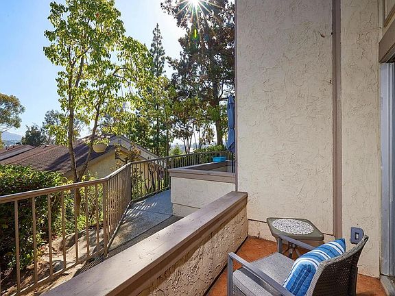 Views from two-story upgraded townhome in the desirable Strawberry Hills community is waiting for you to make it your own! Vaulted ceilings welcome you into the spacious, airy living room with plenty of natural light. The open kitchen sparkles with granite countertops, modern stainless-steel appliances, and ample cupboard space. From the living- and dining areas you’ll catch glimpses of the city lights. Or, look out over the tree-lined neighborhood and enjoy the view of mountains in the distance as you relax on your front patio. Retreat upstairs to the generous primary bedroom with its elegant plantation-style shutters and view, its welcoming dressing area and spacious closet. The second bedroom could easily become a home office or studio. Half bath downstairs & upstairs 3/4 bath PLUS, there is a wonderful vanity sink area with lots of storage outside in the Master Bedroom Dressing area. Amenities include an oversized 2-car garage with laundry area, sink additional storage in rafters and a workbench. Enjoy family time or invite a guest or two to relax by one of the community pool. You can rent club house for a nominal fee and there is a small gym upstairs in the club house Strawberry Hill is such an ideal location -- Centrally located, conveniently close to shopping, restaurants, healthcare offices and an easy hop on to the freeway. Bonus! Costco is close as is Grossmont Center Shopping. Nearby are several parks including Mission Trails Regional Park/Lake Murray with hiking and biking trails, boating, kayaking, and fishing. Approx. 15 minutes to Balboa Park/San Diego Zoo, or brand-new Snapdragon Stadium. About 30 minutes to downtown San Diego, the historic Gaslamp Quarter, and Petco Park as well as San Diego Harbor/Embarcadero, Sea World, San Diego International Airport.