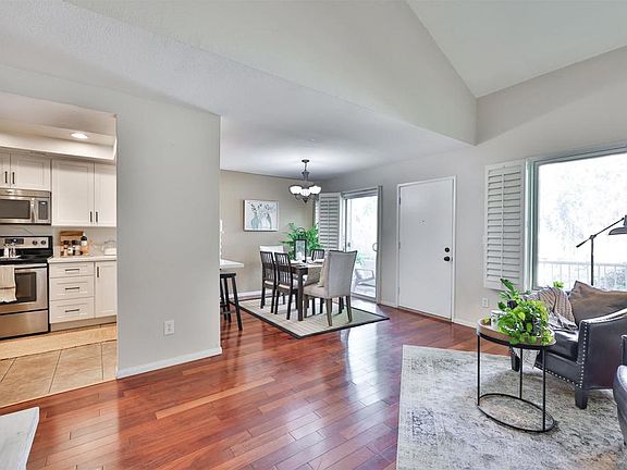 Tastefully appointed and updated La Mesa townhouse with an attached ample sized 2-car garage. This home is tucked at the low traffic, south end of the Strawberry Hills complex. Experience views of the surrounding treetops and Mt. Helix while enjoying pleasant breezes through the home. The contemporary remodeled kitchen boasts new cabinets, quartz counters, recessed lighting and stainless-steel appliances including a 4-door refrigerator with dual zone freezers. Additional features of the home include a large primary bedroom with walk-in closet, a soaring two story vaulted ceiling in the living room, central air-conditioning, full-size laundry hookups, dual paned windows, ceiling fans, plantation shutters, engineered hardwood flooring downstairs and direct access into the home from the garage. The community has 2 salt-water pools, a spa, a recently rebuilt gym with newer equipment and an updated clubhouse available for rental. Centrally located in La Mesa. Close to Costco, Grossmont Center, La Mesa Village, Lake Murray and has easy access to the 8 freeway. Welcome home!