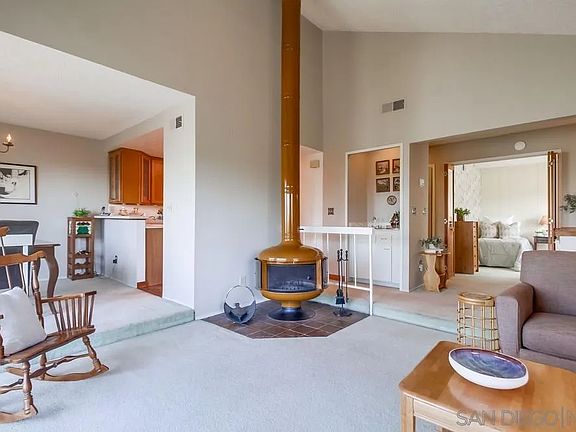 Welcome home to this adorable 2br/1ba end unit townhome in popular Strawberry Hills! Features include updated kitchen, vaulted ceilings, cool vintage fireplace, newer HVAC, dual paned windows & slider, private laundry, tons of natural light & attached 2 car garage. Enter directly from your garage, go upstairs & you have single level living w/excellent views to the West. On a clear day you can see the ocean. Close to shopping, restaurants, Grossmont Hospital & easy freeway access. This rarely available floorplan lives well & is in one of the best locations in the complex. First time buyers, ask me how you can purchase this home with $0 down & starting interest rate at 4%! Seller will help you do this. Why rent when you can own?!!