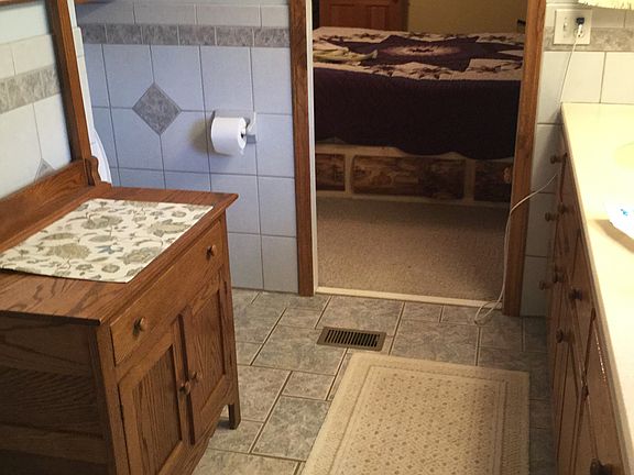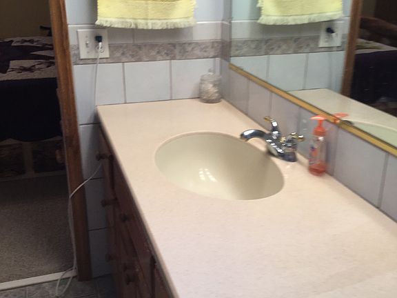 Private wooded area, creek at back of land, branch runs the length of driveway, insulated metal shop behind house. 5 acres with two well, with septic system. Bedrooms have carpet, baths have tile floor and shower. Inside has been completely remodeled. Oak cabinets in kitchen. Built in oak desk in office with china cabinet above desk. Living area has a large built in book shelf with storage at bottom. Rock wall in corner of living room for wood stove.