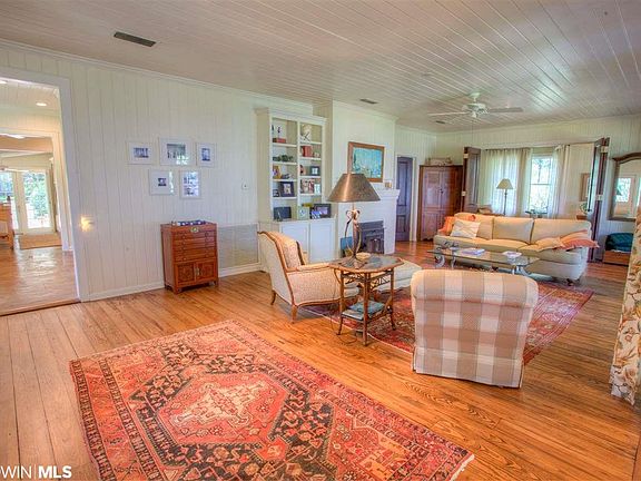 This 'old bay cottage' offers old world charm and appeal - with 9+ foot high ceilings, a full wall of windows looking out onto the bay, wooden tongue and groove walls and ceilings and heart pine floors together with thoughtful updates all make this an easy living home on 80 feet of waterfront in a prime location, NORTH of the Grand Hotel. It even has a sandy beach! All new windows and a Hardi-Plank exterior provide maintenance free living. It offers four bedrooms and four bathrooms, two on each floor. The kitchen was upgraded in 2018, including quartzite countertops and upgraded appliances. The master bath was updated in 2017, with natural stone floors in the shower. Eight foot high sliding Pella doors across the west side access the screened porch - providing wonderful views of the bay and the custom gabled wharf, which has its' own fully equipped kitchen, (refrigerator, 2 burner stove, etc) bar area and separate boat house with lift. Many windows and doors have plantation shutters. A huge live oak, surrounded by camellias grace the bayside property as well as many other mature plantings. A prolific Hamlin orange tree offers bushels of wonderful orange juice. This cottage is protected by a whole house generator. New roof, 2018, with transferrable warrantee. Irrigation system has separate well. Both the home AND the wharf offer tankless hot water heaters. This home has both transferrable flood insurance and termite insurance in addition to an upgraded home warrantee to provide ease of mind to the new owners. This sought-after location is 1/4 mile north of the Grand Hotel. It has occupied this spot, protected from wind and water by Great Point Clear, for the last 80+ years, with its' original heart pine floors. Appointment Only. Sq ft and tax info deemed approx and shall be verified by the purchaser.