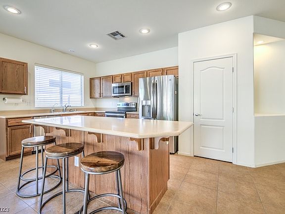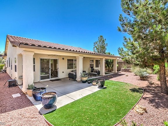 Amazing home in Mountain Falls located near the park. Upgraded appliances beautiful private back yard and patio. Primary suite offers dual sinks, walk in closet and shower. Short distance to the clubhouse with full gym & fitness studio, restaurant, game room, pools, pro shop, driving range, putting green and 18 hole golf course. Easy access to 160 for commuting to Pahrump or Vegas.