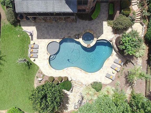 Beautifully updated 4 sided brick home in sought after Vickery Springs community. Gourmet kitchen with marble counter tops and Wolfe and sub zero appliances. Bedroom and full bathroom on main. Upper bonus room and custom finishes throughout such as built in cabinetry, coffered and vaulted ceilings and updated trim. Over-sized master with sitting area and custom closets. Terrace level with kitchenette and wine cellar. Spa like backyard with in ground pool, custom lighting and hot tub.