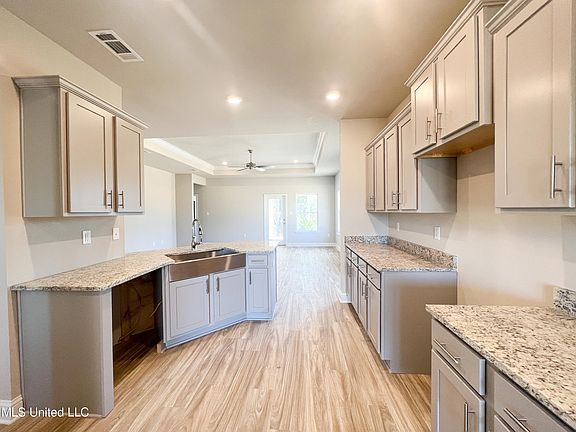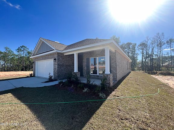 Gorgeous Home in Biloxi! MOVE-IN READY! Brand New 4-sided brick home, walking distance to Schools, 7 minutes to The Promenade shopping center and 25 minutes to Keesler AFB. The ''Emily'' is the perfect floor plan! Large formal dining area, peninsula style kitchen with stainless steel farmhouse sink, touchless faucets, soft-close cabinets & drawers & granite throughout. Tray ceilings in living area & primary bedroom. Separate soaking tub and shower, & double vanity in en-suite. Lot 182 has a beautiful tree-lined view and large front porch and back patio. Patio is also pre-wired for your flat screen. This home comes fully equipped with a Smart home package (builder pays 1st 3 years of the smart home app) This package includes IQ panel, camera doorbell, Honeywell thermostat, Alexa dot, keyless entry, 2 z wave light switches and the ability to open & close your garage from your phone!