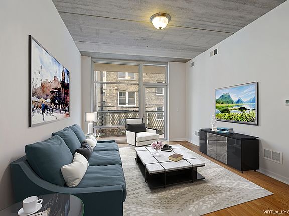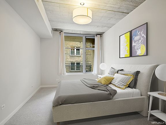 Modern & spacious 2br/2ba in newer (2005) construction building! Ultra modern with 10' concrete ceilings, large windows, open living/dining rooms with hardwood floors. Gourmet chef's kitchen with imported Italian cabinets, marble counters, stainless steel appliances, breakfast bar, master suite with huge custom closet and giant bathroom, large utility closet with in-unit washer/dryer, 23ft covered terrace, garage parking (#37) included. Close to the beach, lake front path, red-line, express bus. Landlords will accept dogs up to 40lbs.