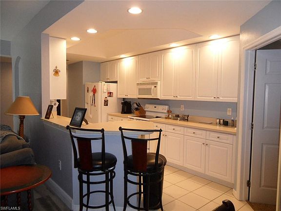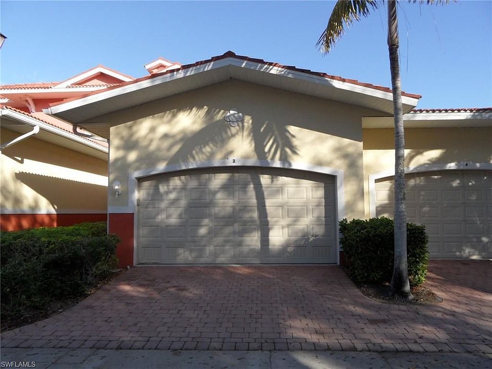 Great first floor Coach home! Bright and cheery with its volume ceilings as this condo has been updated with fresh neutral paint and new tile flooring. The home boasts 3 bedrooms and 2 bath and a split floor plan with the master bedroom for privacy. There is spacious 2 car attached garage, a large great room with dining nook. The oversize screened lanai that can be accessed from the great room or master bedroom. The galley kitchen has 42" cabinets, pantry and a breakfast bar. Gulf Hideaway is a well maintained community offering a community pool with cabana and is centrally located near the Gulf Coast Town Center, Coconut Point Mall, International Airport, Florida Gulf Coast University, golf courses and beaches. Bring your boat or rent one - Mullock Marina is located within walking distance with direct gulf access, boat ramp, storage, fuel, boat rentals, wet and dry slip rentals.