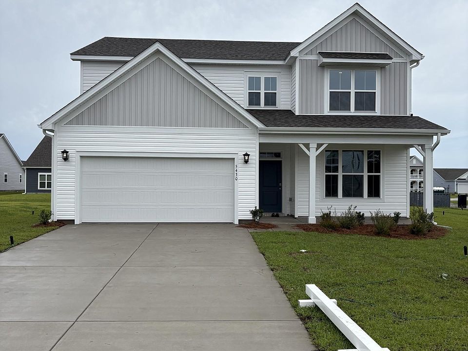 Estimated June Completion Date. The popular Magnolia home features 4 bedrooms, 3.5 baths, a Study with French Doors, and a loft. The spacious kitchen features crisp white 42" cabinets with crown molding, Morning Frost Quartz counter tops, Whirlpool stainless steel kitchen appliances (natural gas range, microwave over the range vented outside, dishwasher), Herringbone Color Wheel 1x3 tile backsplash, and Progress Lighting Conastee Collection Pendant lights over the spacious quartz Island. The kitchen and great room allow for easy access to the covered porch. The primary bedroom is located on the second level and features a a walk in spa shower, double sink vanity, and a generous walk-in closet. Other thoughtful included features... REV Wood laminate flooring by Mohawk throughout the first floor, tile in all baths and the laundry room, Moen plumbing fixtures, Sherwin Williams paint in Snowbound, and oak treads on the stairs leading to the bedrooms and the loft. 100% Energy Star Certified and EPA Indoor AirPlus Qualified with the complete Tyvek house wrap system, spray foam insulation, which means improved energy efficiency and indoor air quality to give you a healthier, and more comfortable home with less pests, less moisture, less air loss, and a lower utility cost. Amenities include a premier location (2 miles to the shopping and dining venues in Carolina Forest, 6 miles to the beach, 7 miles to Market Common, and minutes to Highway 31), a community pool and clubhouse with a catering kitchen, gathering hall, and exercise room. DISCLOSURE: PHOTOS ARE OF A PREVIOUSLY SOLD HOME AND THE MULBERRY MODEL HOME