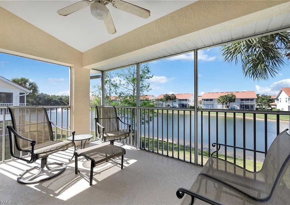 End south facing lakeview listing with 2 bedrooms and den. Condo was freshly painted in a crisp white allowing the new owner to use their creativity to decorate. All contents have been removed since photos were taken. Condo's on this street can be 12 times per year. Lovely south facing view over the lake. New roof installed in 2023 and with impact resistant windows throughout. Appliances are all stainless. A short walk to the community pool and the clubhouse with fitness center, 60' lap pool, spa, tennis courts only steps across Carlton Lakes Blvd from the Osprey Isles community pool. The community has been beautifully landscaped. Enjoy watching the shore birds while enjoying your coffee or cocktail from your lanai off the living room. Worthington Lane is on the Naples Community Hospital Electrical grid which keeps electrical outages at a minimum. It is located behind Seed to Table on Livingston and Immokalee. Publix is next door. The community is within minutes of Naples sugar sand beaches, shopping Mercato, and loads of other businesses and restaurants. Home-Tech Home Warranty in place and can be transferred to new owner.