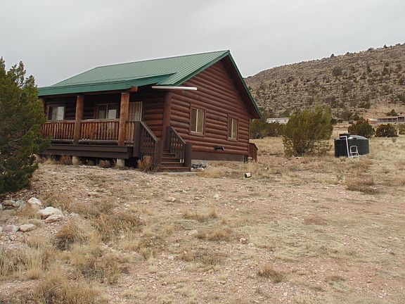 This is a very well built freshly stained partial log cabin sitting on 4 acres with great views and easy road access ,only about 2 miles off of pavement. A great covered front porch allows you to sit outside and enjoy the views. Being hooked to the grid makes this a desirable property as it sits on 4 acres so theirs plenty of room to add that garage or work shop. A great property for a weekend get away, full time resident or expand to fit the life style you want. Come check this Cabin out!