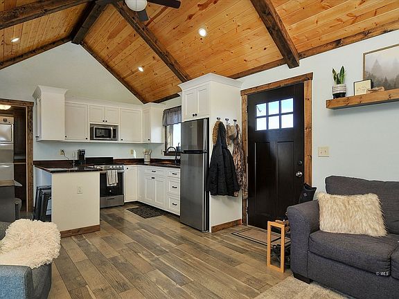 Everyone will just fall in love with this adorable tiny home on 19 acres! This home is light, bright and features high vaulted wood beamed ceilings, beautiful laminate flooring for easy care, and a great little loft bedroom to snuggle into! If you need a HUGE WORKSHOP, take note of this 2240 sq ft amazing heated workshop with 3 phase electric power! Currently used as a home-based business for a woodworker, this building could also make a great place to store your RV, motorhome, boat, whatever! If you need a large home, then live in the tiny home, build your dream home, and use the tiny home for guests. I think this lovely home would also make a great VRBO rental, as the views are amazing and it is close to National Forest trailheads for hunting, hiking, fishing, exploring! Imagine the night skies at this location! Not far from town and close to Highway 69. Listed at $349,900. Don't think this one will be around for awhile, or you will miss out!