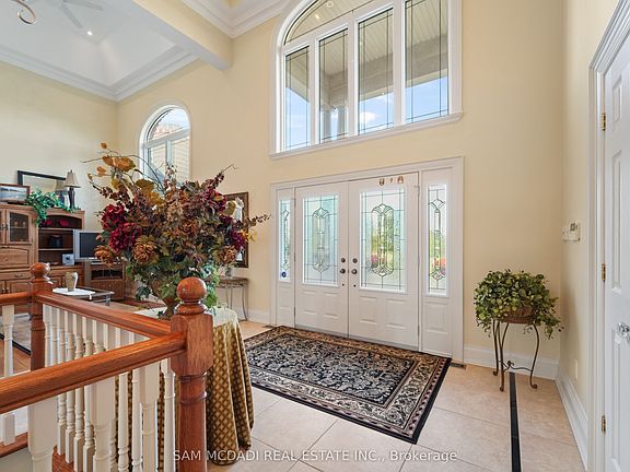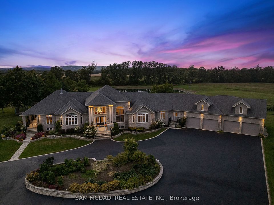 Welcome to a truly rare private estate at 5431 Appleby Lane with 87 acres of uninterrupted countryside elegance just beyond the city. Commanding attention from the very first glance a custom-designed over 19-ft entry gate offering both elegance and security, sets the tone for the prestigious property it guards. Decorative lighting fixtures provide dramatic nighttime illumination, while automated access control ensures privacy and peace of mind. Ideal for those seeking privacy, prestige, and a secure entryway to a vast estate, this gate is more than just an entrance. Its a bold architectural feature that sets the tone for the extraordinary property beyond. This custom estate offers more than 9,300 sq ft of finished living space with four bedrooms and four bathrooms above grade plus an additional bedroom and two baths in the fully finished lower level, providing flexibility for family, guests, or staff. Designed for scale and warmth, the home places the primary suite and a second bedroom on the main level, with two more bedrooms upstairs; main rooms feature 18ft ceilings while lower levels have 8ft ceilings. Rich hardwood runs through principal rooms and the chefs kitchen includes granite counters, built-in oven and microwave, and high end appliances; a gas fireplace anchors the main living area and premium finishes appear throughout. The lower level contains two recreation areas and carpeted family spaces for comfort. Outdoors is a private resort with a finished inground pool set among interlocking patios and multiple ponds, expansive lawns and woodlands, plus room for hobby farming, equestrian use, or future development. Four garage bays, ample guest and equipment parking, a septic system and water cistern complete the property, with mechanical independence provided by two owned furnaces, two owned air conditioners, and two owned hot water tanks. Book a private showing today to experience the scale and serenity in person.