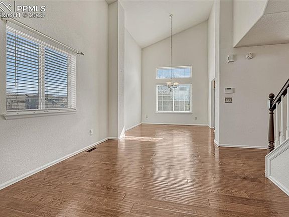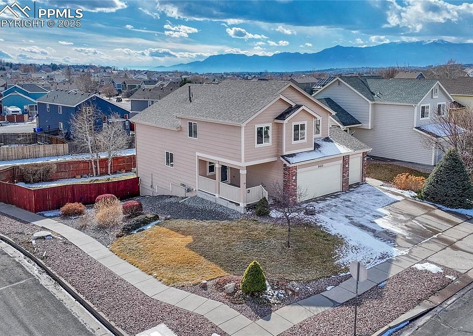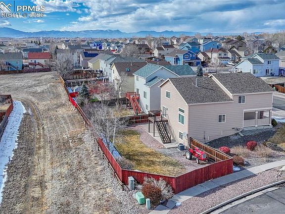 A large corner lot backing to green space, a 3-car garage, a walk out basement and fantastic outdoor space really set this updated 2,927sqft|4BD|4BA home apart! Upon entering, your eye will be caught by the vaulted ceiling and natural light. The eat-in kitchen offers stainless steel appliances, pantry, tile floor and walk-out to a new composite deck with Front Range views and backyard access. Refrigerator included! The great room features a gas fireplace, ceiling fan and built-ins. A half bath and laundry space round out the main floor. Upstairs is the primary bedroom with Pikes Peak/Front Range views, vaulted ceiling, ceiling fan and walk-in closet. The adjoining 5-piece bath offers a tile floor, soaker tub and double vanity. Each of the three additional upstairs bedrooms are carpeted and have crown molding and ceiling fans. A full bathroom with tile floor and double vanity and a loft round out the upstairs space. Brand new carpet throughout upper level. Downstairs are two large, carpeted flex areas, a ¾ bath, storage space and a walk-out to the large, fully fenced and landscaped backyard with mature trees and paver and concrete patio. The fabulous backyard space features ample space for lounging, dining and playing. Central AC for those hot summer days ahead. Located within minutes of the Powers corridor, this home provides convenient access to parks, shopping, dining, schools and entertainment.