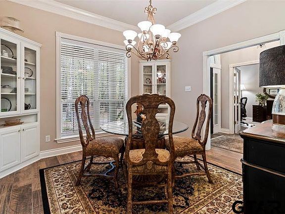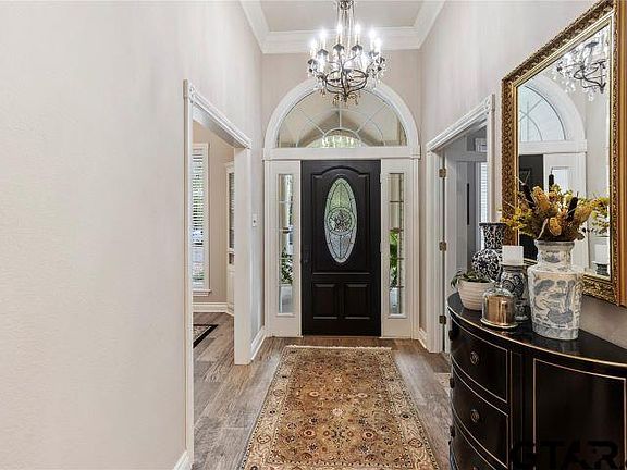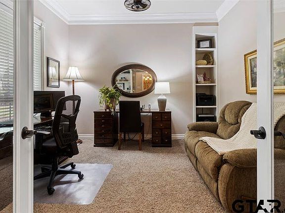 Travel down one of Longview’s most beautiful streets and arrive at your single story dream home, located on over 7 acres of natural beauty. This classic home has been continuously updated by the current owners, including updates in 2015-2018 to the bathrooms and primary bedroom, replacement of the hvac system in 2020, and replacement of the dishwasher in 2021. In 2022, the sellers replaced the flooring with high end interior porcelain tile flooring, with the look of hard-woods but much more durable and cohesive, replaced the roof and painted the exterior. They replaced two water heaters in 2023, and replaced all hardware in 2024. This special home offers a versatile layout, incredible storage, elevated ceiling heights, triple-crown moldings, and beautiful views from almost every room. Upon entering the home, the first thing you notice is that you can see all the way to the back yard through gorgeous windows in the living room. To the right are French doors leading to an office with built in shelving, perfect for readers or work from home. Across the entry is a formal dining room with built in corner cabinets. The living room enjoys 10’ ceilings, built- in storage, fireplace, and wall of windows overlooking the back yard. The living room leads to the eat in kitchen with small desk and built-ins. The kitchen enjoys center island with bar stools. The primary bedroom enjoys a sitting area, bathroom with dual sinks, separate tub & shower, spa tub & oversized closet. Two guest bedrooms share a jack & jill bath, but include private sink areas. The 4th bedroom enjoys private bath with large walk-in shower. All bedrooms enjoy walk in closets! Utility room includes hanging area, sink, folding space and more. The mud room leads to the 3 car garage large enough to park a truck! With both front and back covered porches, you can relax and enjoy the animals, look at beautiful scenery and unwind, in an outdoor setting that is unbeatable.
