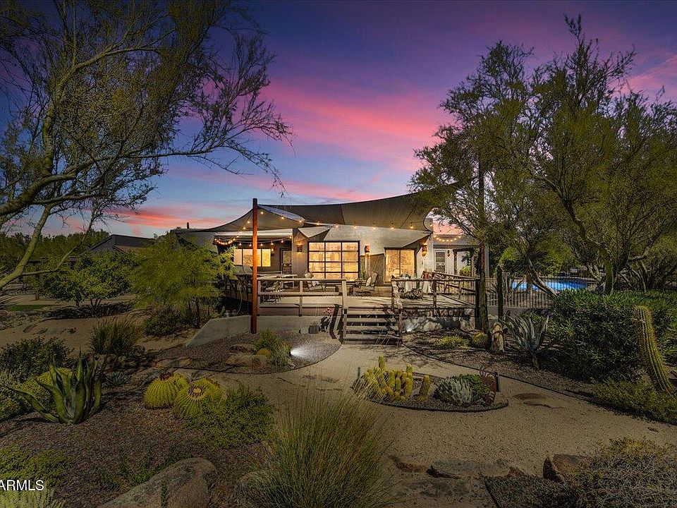 Tucked away in the heart of Cave Creek on a sprawling 1.2-acre lot, this fully remodeled home offers the perfect blend of privacy, luxury, and Southwest charm. Designed with a resort-style atmosphere, the home features a modern gourmet kitchen with a spacious walk-in pantry, beautifully updated bathrooms, and stylish new flooring throughout. A generous bonus room provides flexibility and could easily serve as a fourth bedroom. Thoughtfully upgraded, the home also boasts newer HVAC systems, fresh interior and exterior paint, and a recently recoated roof. Step outside to a lush backyard oasis, enhanced by mature landscaping and ambient lighting that showcases the property's natural beauty. A large elevated deck with built-in grill and custom shade sails creates an ideal space for outdoor dining and relaxation. Enjoy the sparkling pool, spa, and fire pit perfect for entertaining or simply taking in the peaceful desert surroundings and local wildlife. Located on a quiet cul-de-sac just moments from top-rated schools, shopping, and dining, this expansive property offers endless possibilities including space for a casita, workshop, or RV storage.
